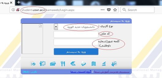 1-      ورود به سایت student.uswr.ac.ir  جهت ثبت نام در سامانه سما و در نهایت دریافت شماره دانشجویی برای ورود به سامانه بوستان .