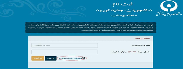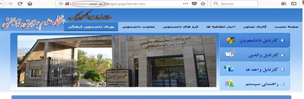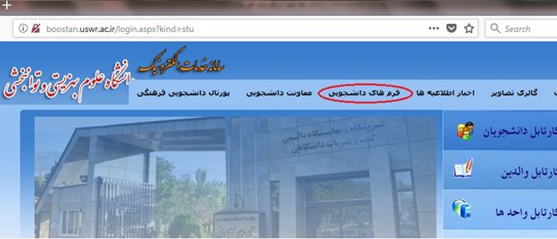 2-      مراجعه به سايت boostan.uswr.ac.ir  و ورود به آیکون دانشجویان جدیدالورود برای انجام تشکیل پرونده.