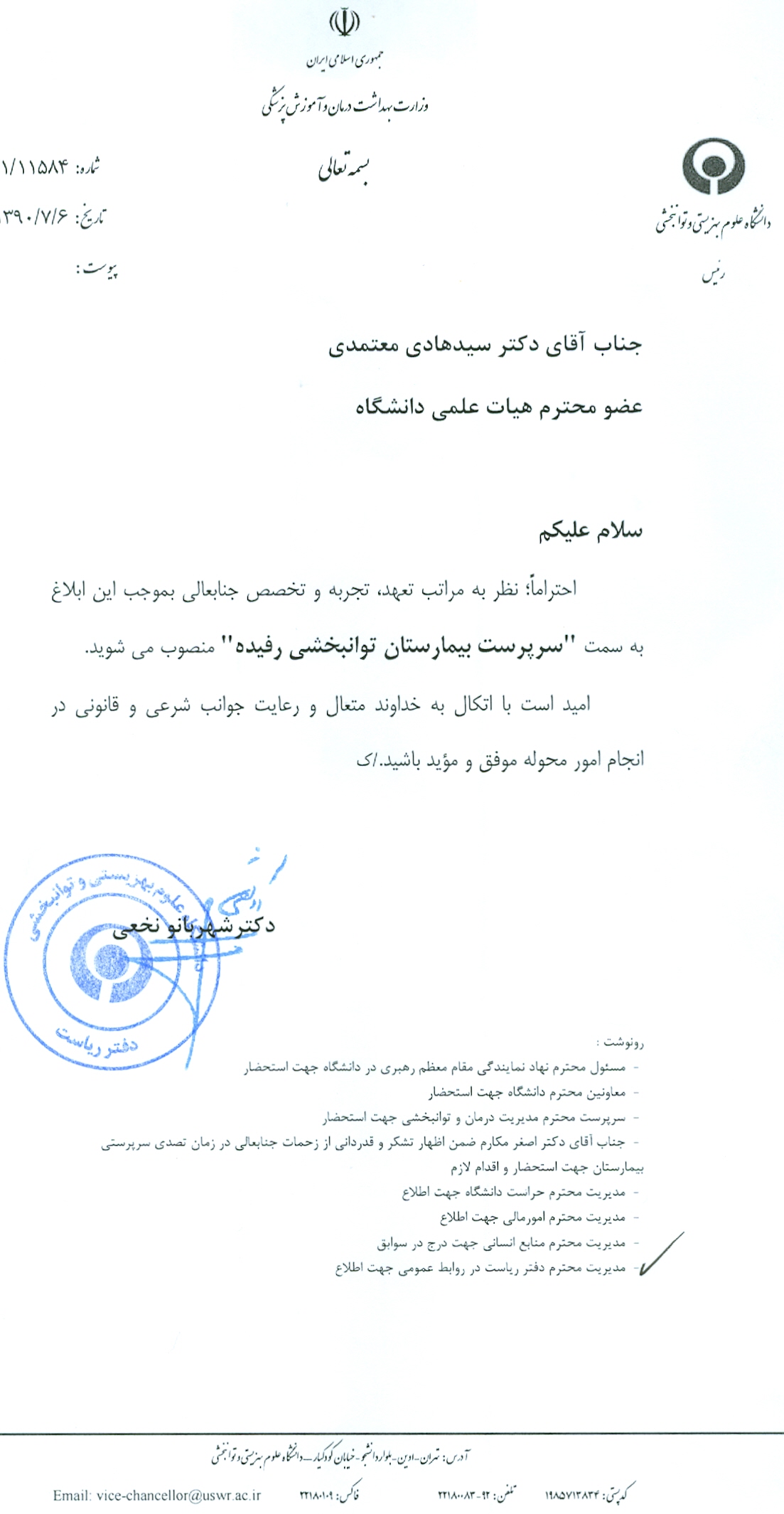 - پیام تبریك رئیس دانشگاه علوم توانبخشی و سلامت اجتماعی در گرامیداشت روز ملی " ارتوز و پروتز"