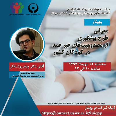 اخبار > وبینار « معرفی طرح پیشگیری از مصدومیت های غیرعمد در کودکان کشور » روز سه شنبه 15 مهرماه برگزار می شود