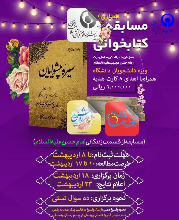 اخبار > تمدید مهلت نامنویسی مسابقه مجازی کتابخوانی " سیره پیشوایان "