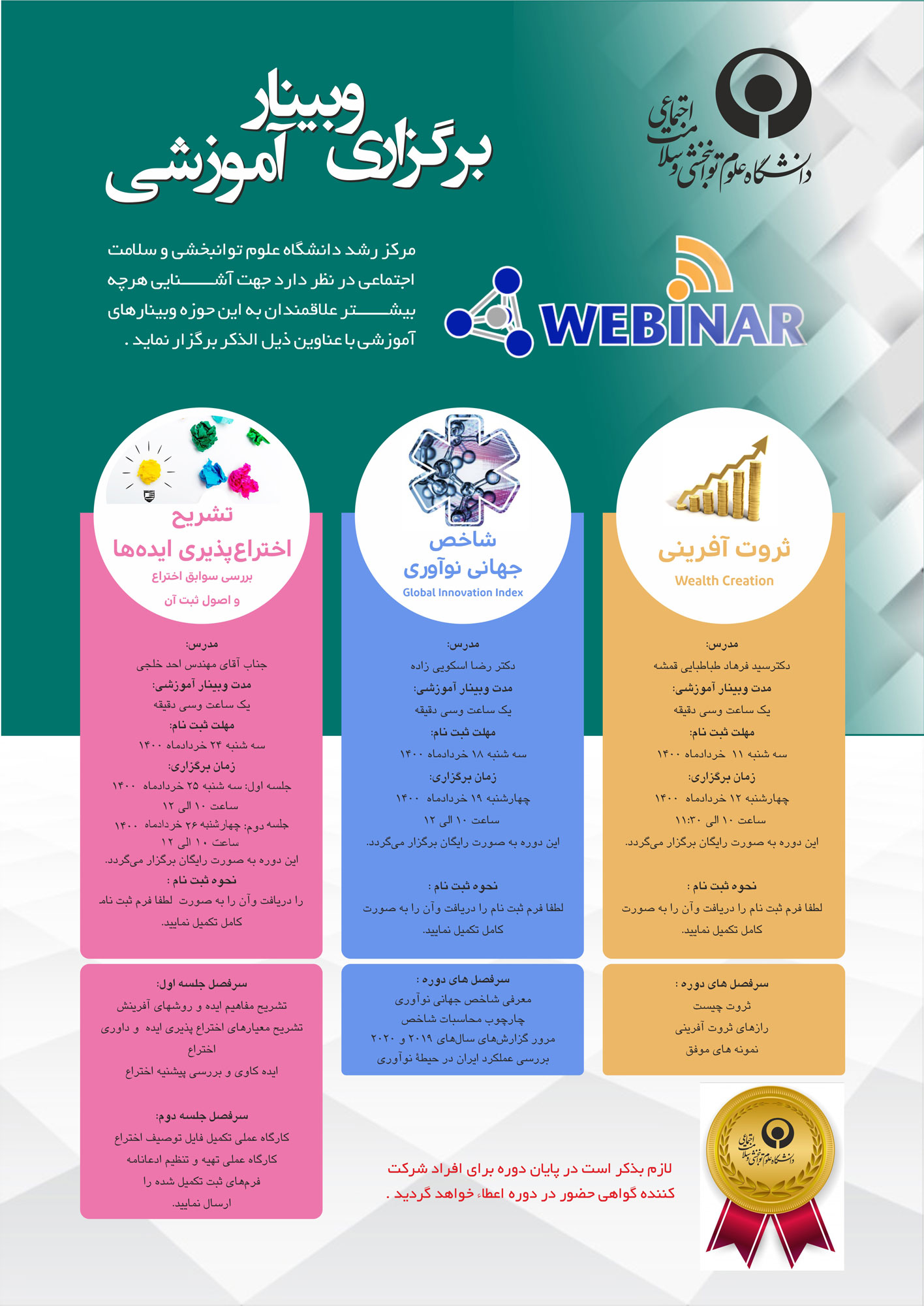 اخبار > وبینارهای آموزشی برای آشنایی بیشتر با مرکز رشد فناوری دانشگاه برگزار می شود