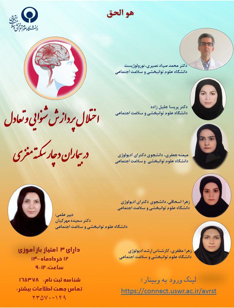اخبار > وبينار « اختلال پردازش شنوايي و تعادل در بيماران دچار سكته مغزي »، روز چهارشنبه برگزار می شود