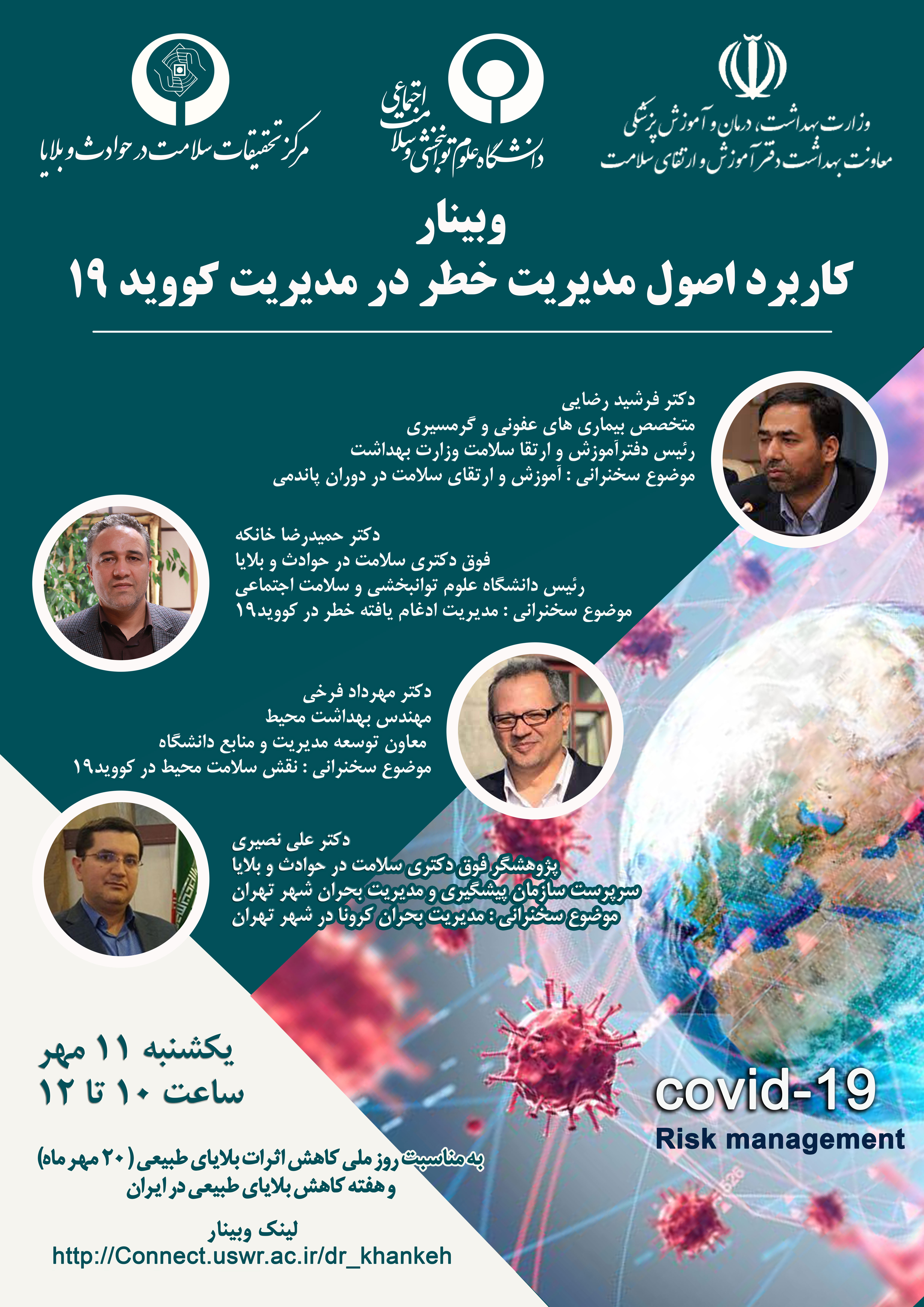 اخبار > وبینار « کاربرد اصول مدیریت خطر در مدیریت کووید 19 »، 11 مهرماه برگزار می شود