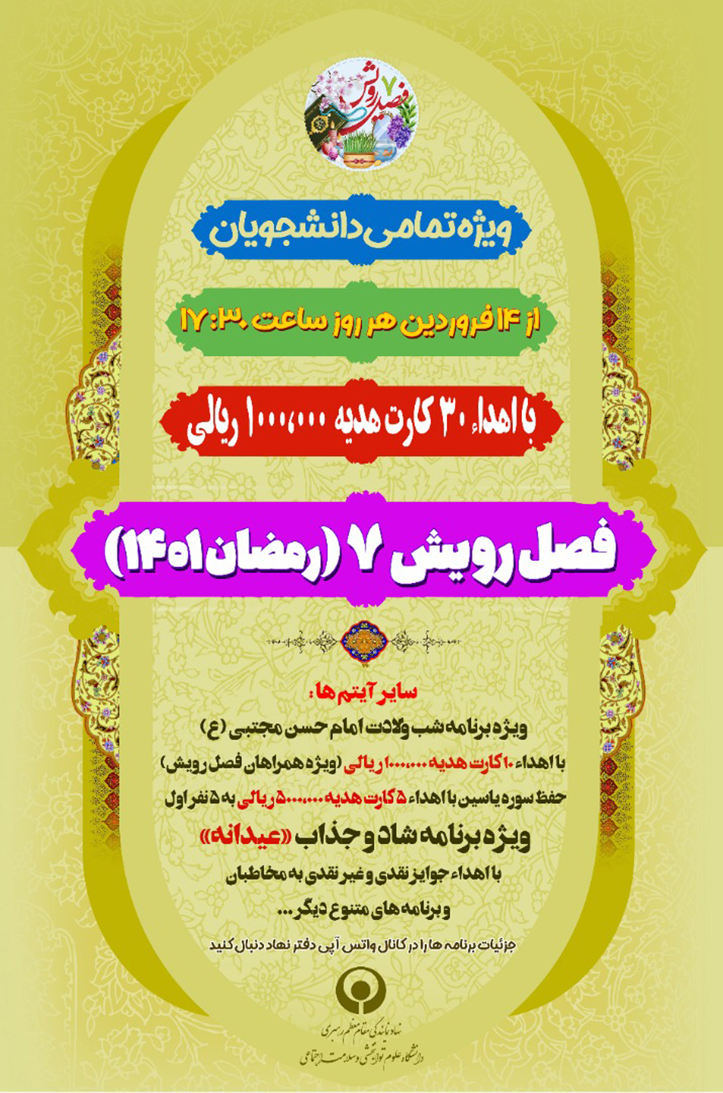 اخبار > ویژه برنامه های دفتر نهاد نمایندگی مقام معظم رهبری در دانشگاه برای ماه مبارک رمضان