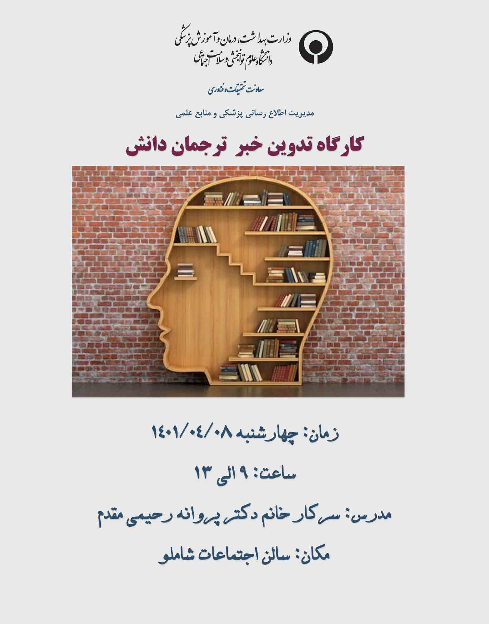 اخبار > کارگاه آموزشی " تدوین خبر ترجمان دانش "، صبح چهارشنبه برگزار می شود