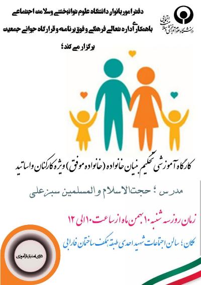 اخبار > کارگاه آموزشی تحکیم بنیان خانواده (خانواده موفق) سه شنبه 10 بهمن برگزار می شود