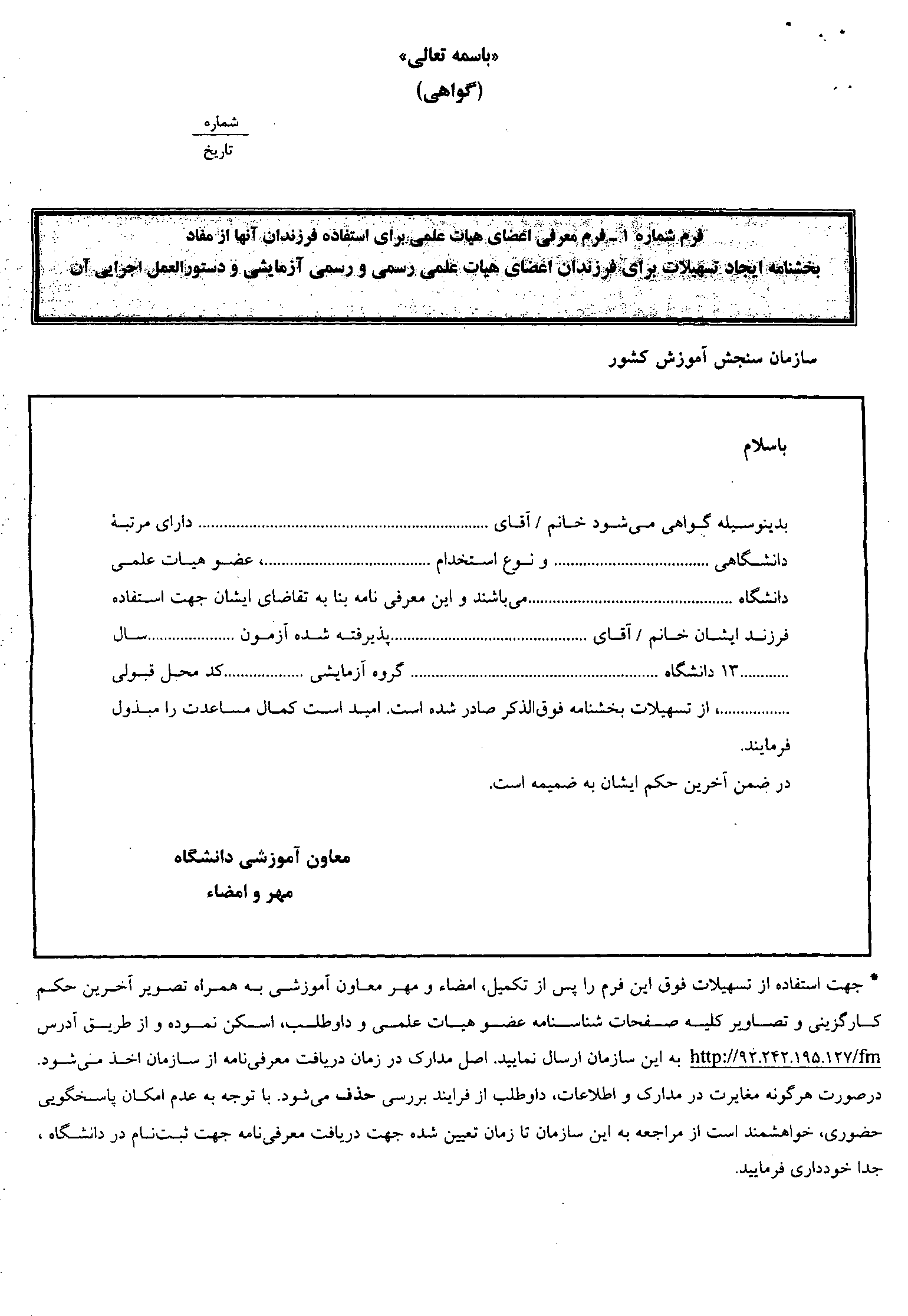 اخبار > تسهیلات فرزندان اعضای هیات علمی برای پذیرفته شدگان آزمون سراسری سال 1392