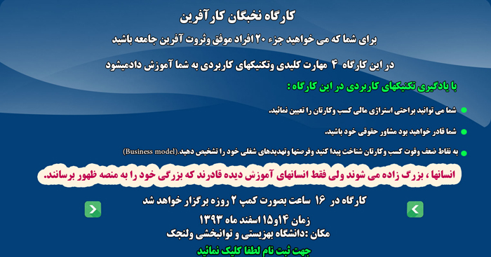 اخبار > کارگاه آموزشی نخبگان کارآفرین