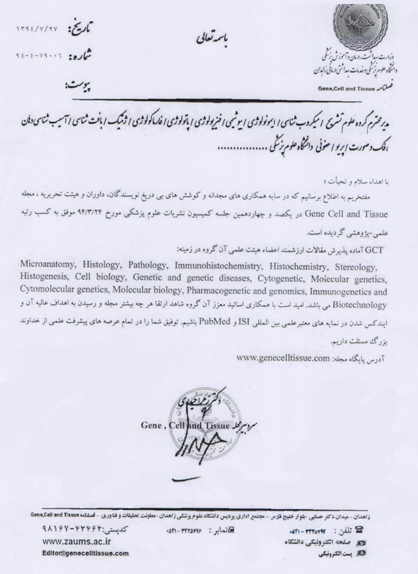 اخبار > فصلنامه علمی ـ پژوهشی Gene,Cell and Tissue آماده پذیرش مقاله می باشد