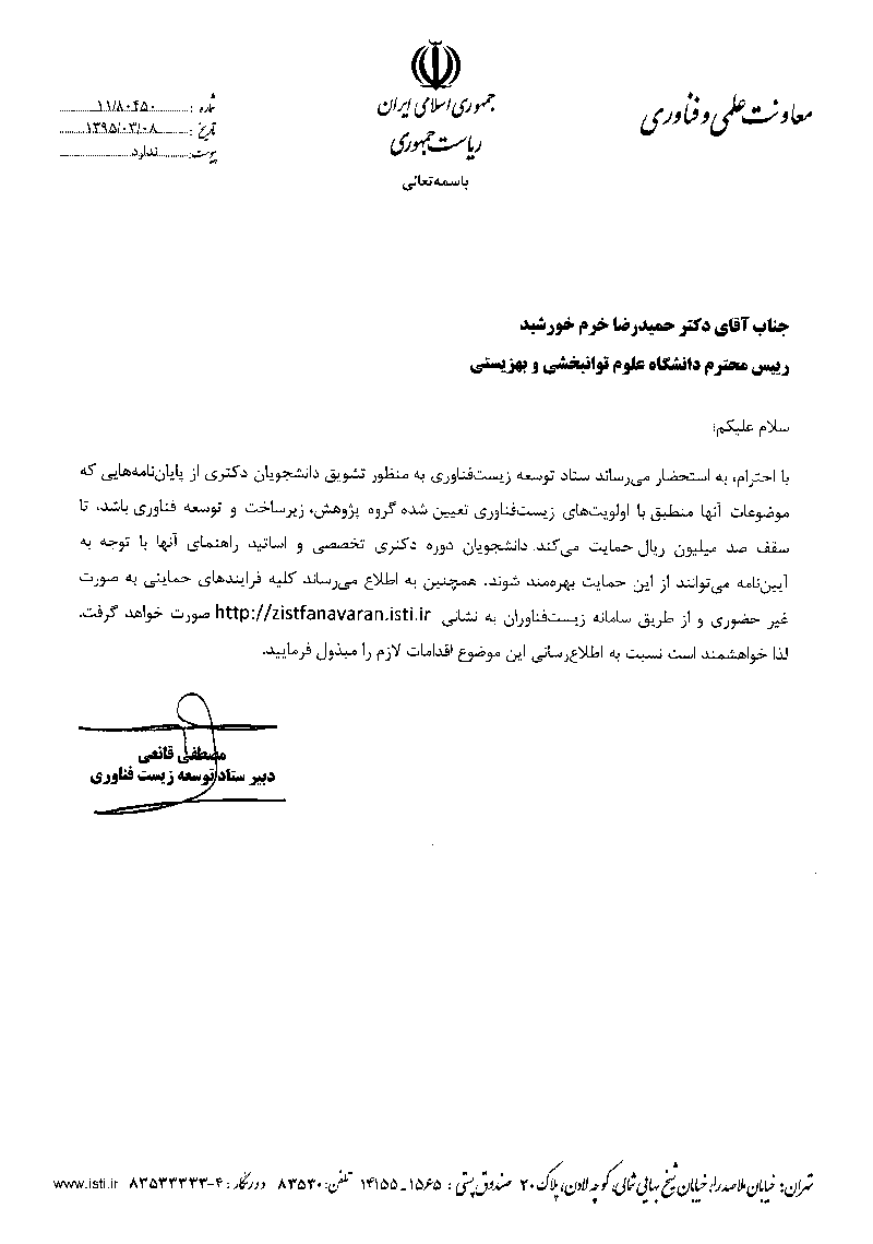 اخبار > معاونت علمی و فناوری ریاست جمهوری اعلام کرد: حمایت پایان نامه های دکتری با الویت های زیست فناوری